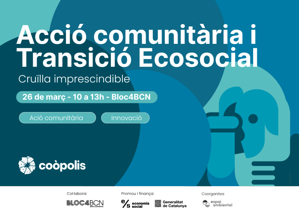 El passat 26 de març, Coòpolis va acollir un debat necessari i urgent: com fer que la intersecció d’acció comunitària i transició ecosocial millori el nostre entorn. Sota el títol “Acció Comunitària i Transició Ecosocial (cruïlla)”, i en un context de policrisi -econòmica, social i ecològica-, vam explorar com la unió indivisible d’aquestes dues mirades ens permet construir resiliències col·lectives reals i arrelades als territoris.